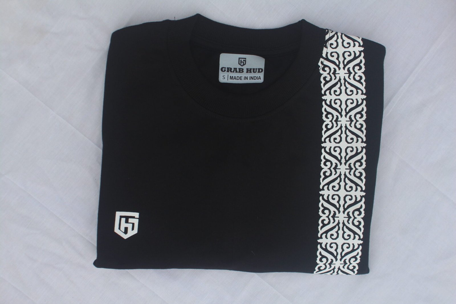 The back showcases a bold, screen and puff printed mandala-inspired artwork that delivers texture and visual depth for a premium look and tactile feel. The front features a clean geometric panel and a minimal screen printed GH logo for a refined streetwear finish.Fabric & fit