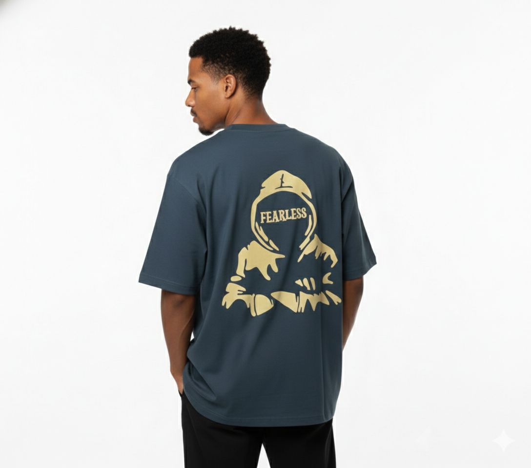 GrabHud Fearless Oversized Tee in Navy Blue – Bold Streetwear, Unshakable Attitude